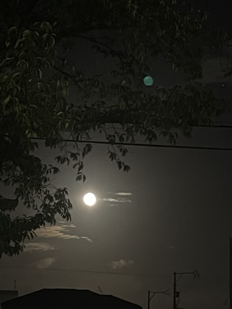 帰りに東の空を見上げたら、まん丸お月様が木の間から顔を覗かせていました。今日は今年一番大きなブルームーンだそうです。夜は涼しくなってきました。虫の音が聞こえてきます。